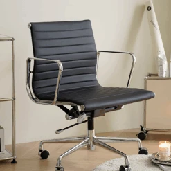 Qureshi Swivel Office Chair With Footstool, Black Leather(Qureshi Swivel Office Chair Black Leather)