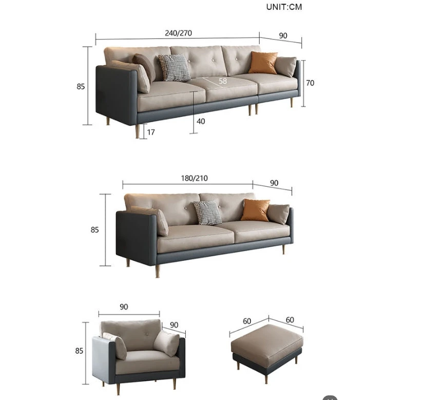 | Size | Armchair, Three Seater 240cm, Three Seater 270cm, Ottoman ( Can't be sold separately. ) |